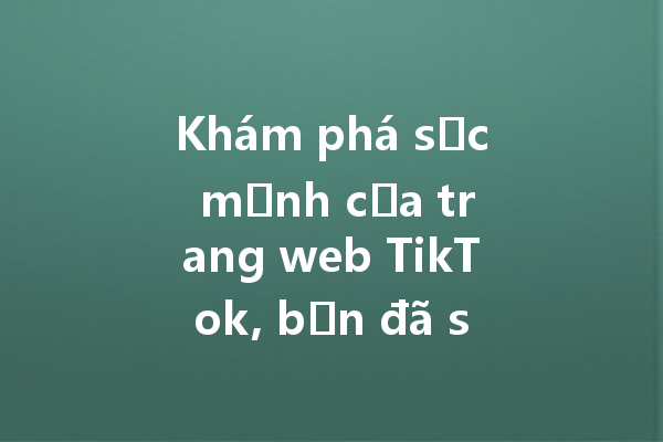 文章目录▼CloseOpen Trang web TikTok hoạt động như thế nào? … 阅读更多