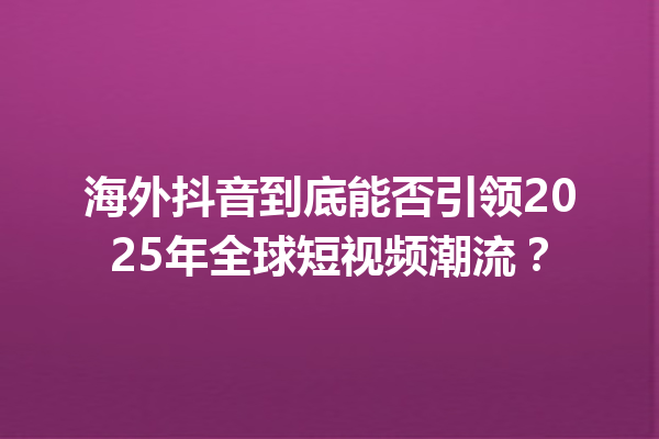 海外抖音到底能否引领2025年全球短视频潮流? 2025年12月28日 作者 aipost 文章目录▼CloseOpen 海外抖音与国内抖音有什么不同? 用户互动在短视频平台上有多重要? 技术创新如何影 … 阅读更多