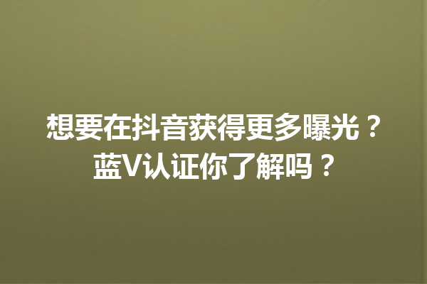 想要在抖音获得更多曝光?蓝V认证你了解吗? 2025年12月28日 作者 aipost 文章目录▼CloseOpen 什么是抖音蓝V认证? 申请蓝V认证需要哪些材料? 蓝V认证后能享受哪些好处? 蓝 … 阅读更多